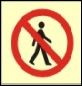 These signs prohibit actions detrimental to safety. Black graphical symbol on a white circle within a circular red band and behind a red crossbar.