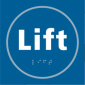 Progress down from here (indicating direction of travel) | Suspended at head of stairs or ramp. Suspended at change of level. |